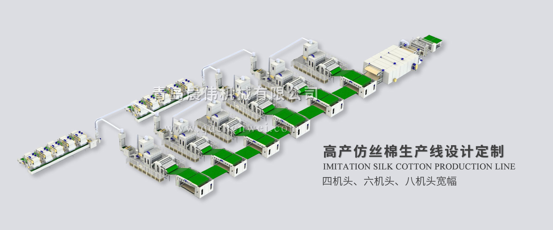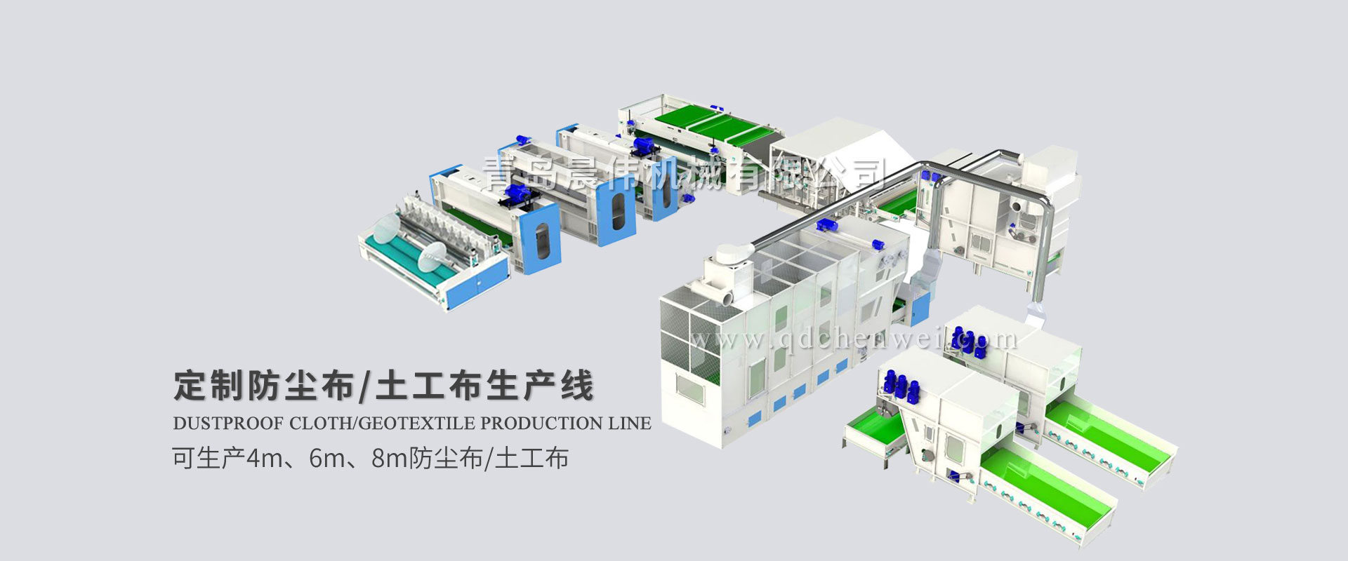 青島晨偉機(jī)械有限公司 專(zhuān)業(yè)設(shè)計(jì)定制各類(lèi)無(wú)紡布單機(jī)設(shè)備及生產(chǎn)線(xiàn)。 我公司主要產(chǎn)品:電子秤重開(kāi)包機(jī)、開(kāi)松機(jī)、給棉機(jī)、氣壓棉箱、(高速)單錫林雙道夫梳理機(jī)、(高速)雙錫林雙道夫梳理機(jī)、鋪網(wǎng)機(jī)、中速針刺機(jī)、高速針刺機(jī)、烘箱/烘房、燙光機(jī)、熱軋機(jī)、收卷切片機(jī),無(wú)紡布設(shè)備、仿絲棉設(shè)備、防塵布設(shè)備、噴膠棉設(shè)備、無(wú)膠棉設(shè)備、硬質(zhì)棉設(shè)備、土工布設(shè)備生產(chǎn)線(xiàn)、椰棕床墊生產(chǎn)線(xiàn)、大棚保溫被生產(chǎn)線(xiàn)、蠶絲被生產(chǎn)線(xiàn)、床上用品設(shè)備等各種無(wú)紡布機(jī)械設(shè)備。
