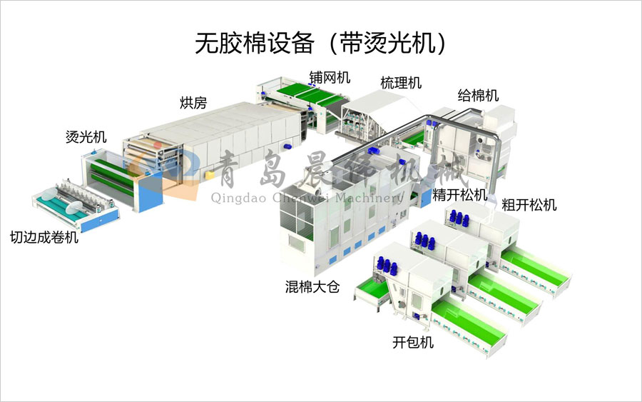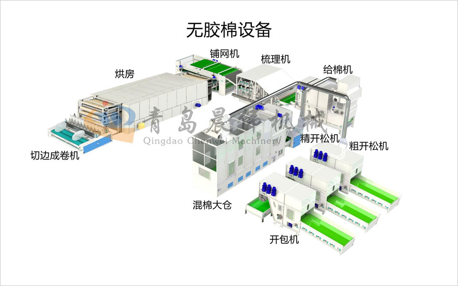 開包機-開松機-振動給棉機-梳理機-鋪網(wǎng)機-烘房-切邊成卷機