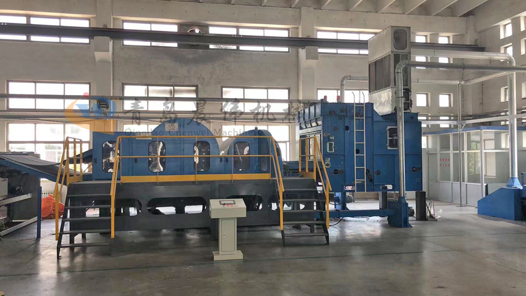 2. CWKS-開松機:各種不同纖維被放入水平輸送簾,經(jīng)壓棉輥和對輥羅拉喂入,經(jīng)高速打手開松后經(jīng)輸棉風機以適量的風量輸送纖維原料供后道工作使用;并配備橋式除鐵裝備。開松效果好,不易纏棉,產(chǎn)量高。