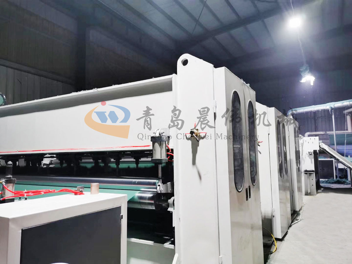 5. CWPW-鋪網(wǎng)機(jī):用于將梳理纖網(wǎng)通過(guò)移動(dòng)小車交叉折疊為所需幅寬和定量的多層纖網(wǎng),以供后道工序使用。鋪網(wǎng)輥采用特殊結(jié)構(gòu),加裝壓網(wǎng)輥和導(dǎo)流板,不飄網(wǎng)不起皺,五只大功率電機(jī)精確控制各部件的運(yùn)動(dòng),電動(dòng)輸出簾高度調(diào)節(jié)裝置