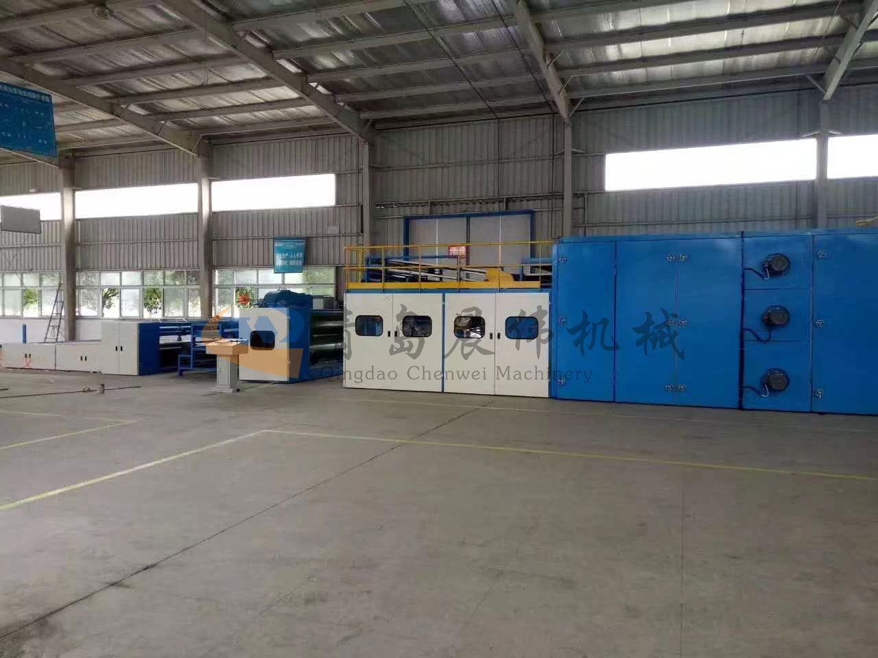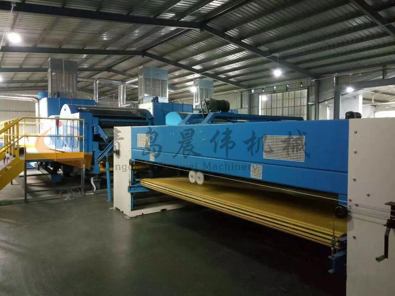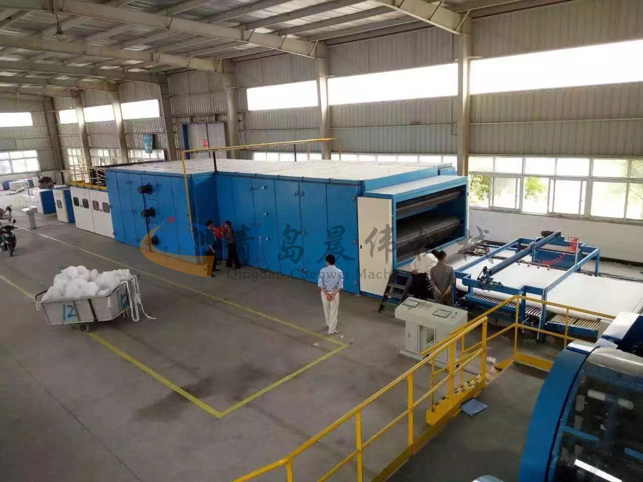 開包機(jī)-開松機(jī)-振動給棉機(jī)-梳理機(jī)-鋪網(wǎng)機(jī)-烘房-燙光機(jī)-成卷切片機(jī)