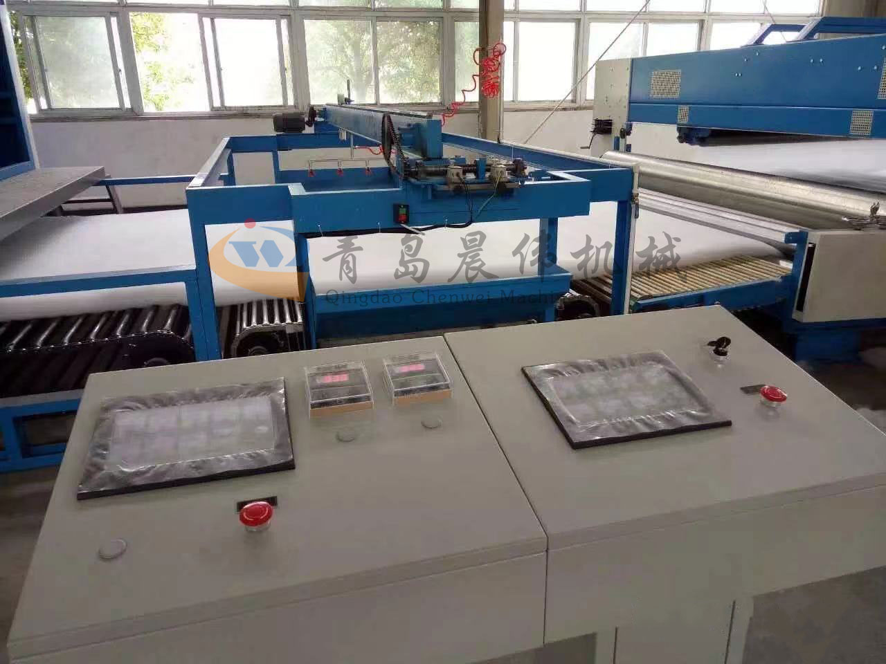 5. CWPW-鋪網(wǎng)機(jī):用于將梳理纖網(wǎng)通過移動小車交叉折疊為所需幅寬和定量的多層纖網(wǎng),以供后道工序使用。鋪網(wǎng)輥采用特殊結(jié)構(gòu),加裝壓網(wǎng)輥和導(dǎo)流板,不飄網(wǎng)不起皺,五只大功率電機(jī)精確控制各部件的運(yùn)動,電動輸出簾高度調(diào)節(jié)裝置