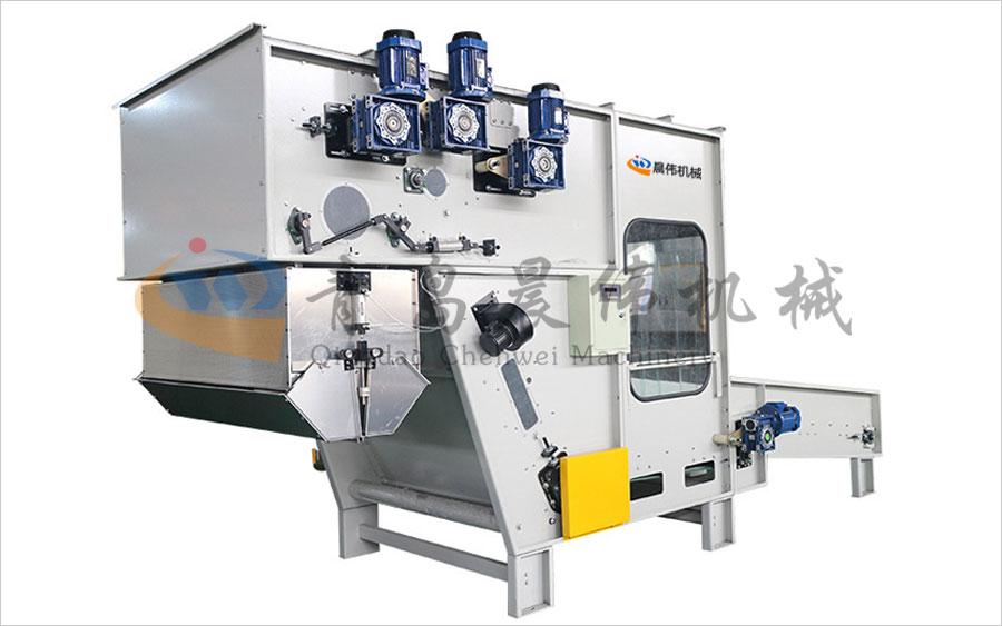 將各種等級(jí)整包或半包料進(jìn)行初步打開,無(wú)需人工抖棉,降低勞動(dòng)強(qiáng)度,通過稱重系統(tǒng)PLC計(jì)算進(jìn)行準(zhǔn)確配比,均勻平鋪到長(zhǎng)簾上。